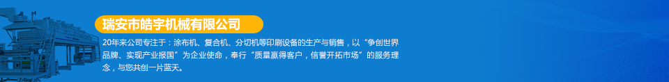 瑞安市皓宇機(jī)械有限公司是瑞安一家私營(yíng)責(zé)任有限公司,注冊(cè)資金200萬(wàn),員工40余人,是具有獨(dú)立法人地位,專(zhuān)業(yè)生產(chǎn)定做各種非標(biāo)準(zhǔn)涂布機(jī)、復(fù)合機(jī)、印刷機(jī)、分切機(jī)、壓膜機(jī)等機(jī)械設(shè)備的制造廠。公司的機(jī)器主要用于生產(chǎn)保護(hù)膜、膠帶、雙面膠、不干膠、相紙、油畫(huà)布、汽車(chē)防爆膜、熱轉(zhuǎn)印、燙金膜、離型膜、離型紙、軟包裝印刷、軟包裝復(fù)合、軟包裝分切等各種產(chǎn)品... [詳細(xì)]